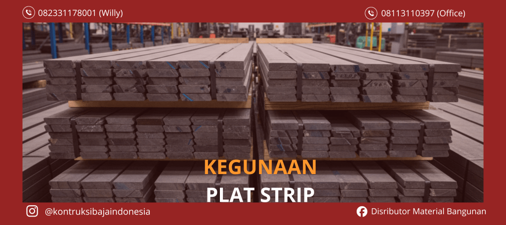 Plat strip digunakan sebagai penguat sambungan pada rangka baja, balok, dan kolom. Fungsinya adalah meningkatkan kekuatan sambungan serta membantu distribusi beban agar struktur lebih stabil.