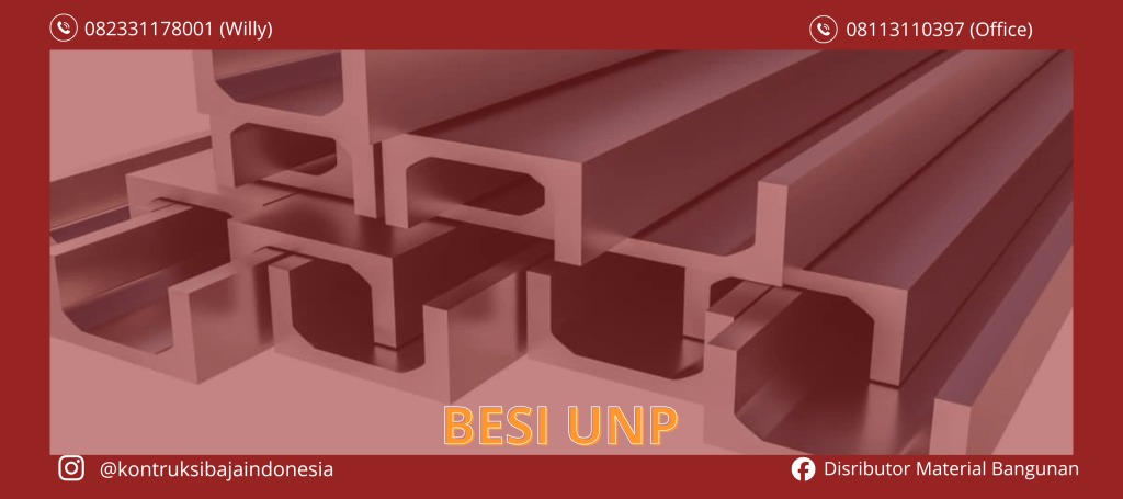Besi UNP (U-Channel) adalah baja profil dengan penampang berbentuk huruf U yang diproduksi melalui proses hot rolled. Profil ini memiliki sisi (flange) dan badan (web) yang kokoh, sehingga mampu menahan beban tekan dan lentur dengan baik.